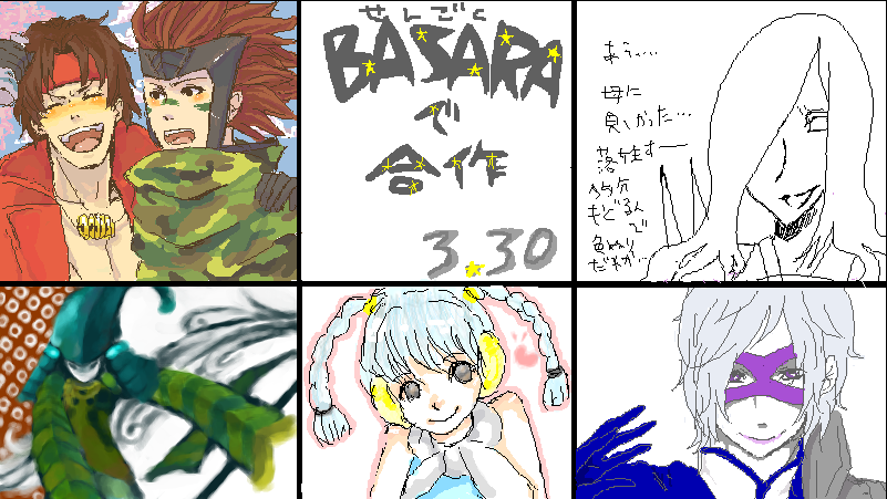 皆さんジャンルが合わなかったり(?)などで、いろいろ話した結果、BASARAで合作になりました。(お